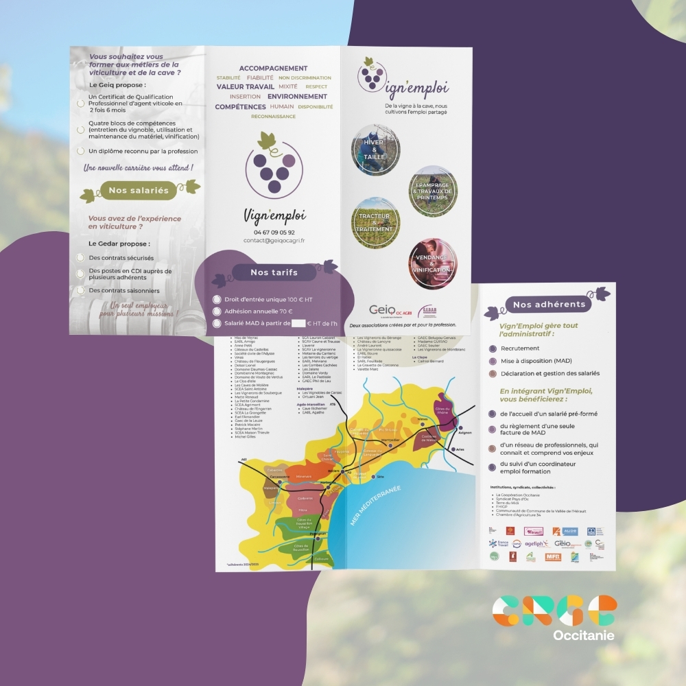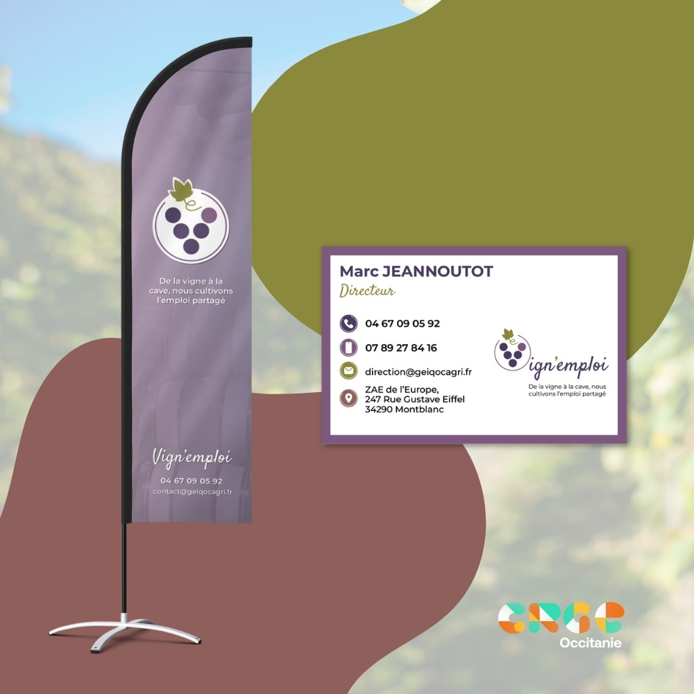 Nous sommes fiers d’avoir accompagné le GEDAR et le GEIQ Oc Agri, présents depuis 15 ans sur le territoire de l’Hérault, dans la création de leur ensemblier “Vign’Emploi”. Une nouvelle bannière qui porte haut les valeurs de l’emploi partagé dans la filière viticole.
