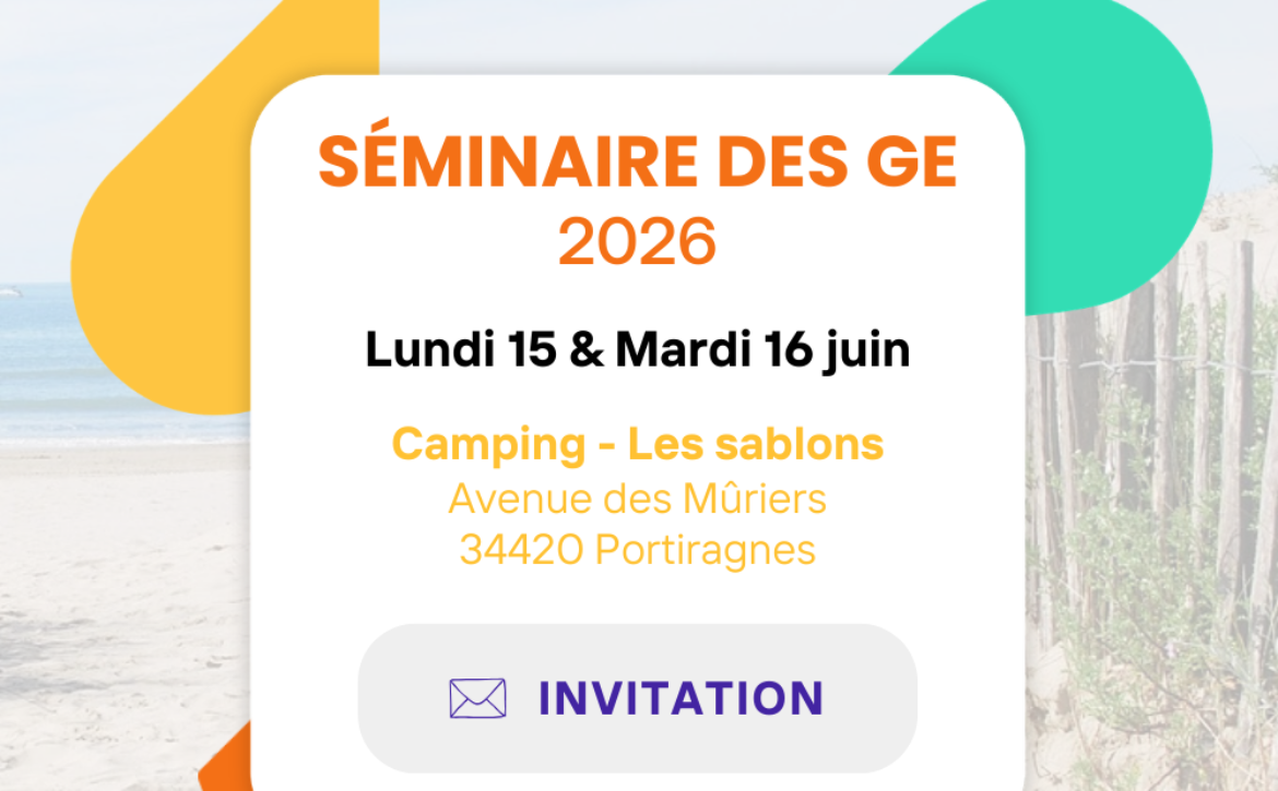 Chers GE & partenaires, vous êtes invités au séminaire des GE 2026 du CRGE Occitanie, le lundi 15 et mardi 16 juin. Inscriptions ouvertes.